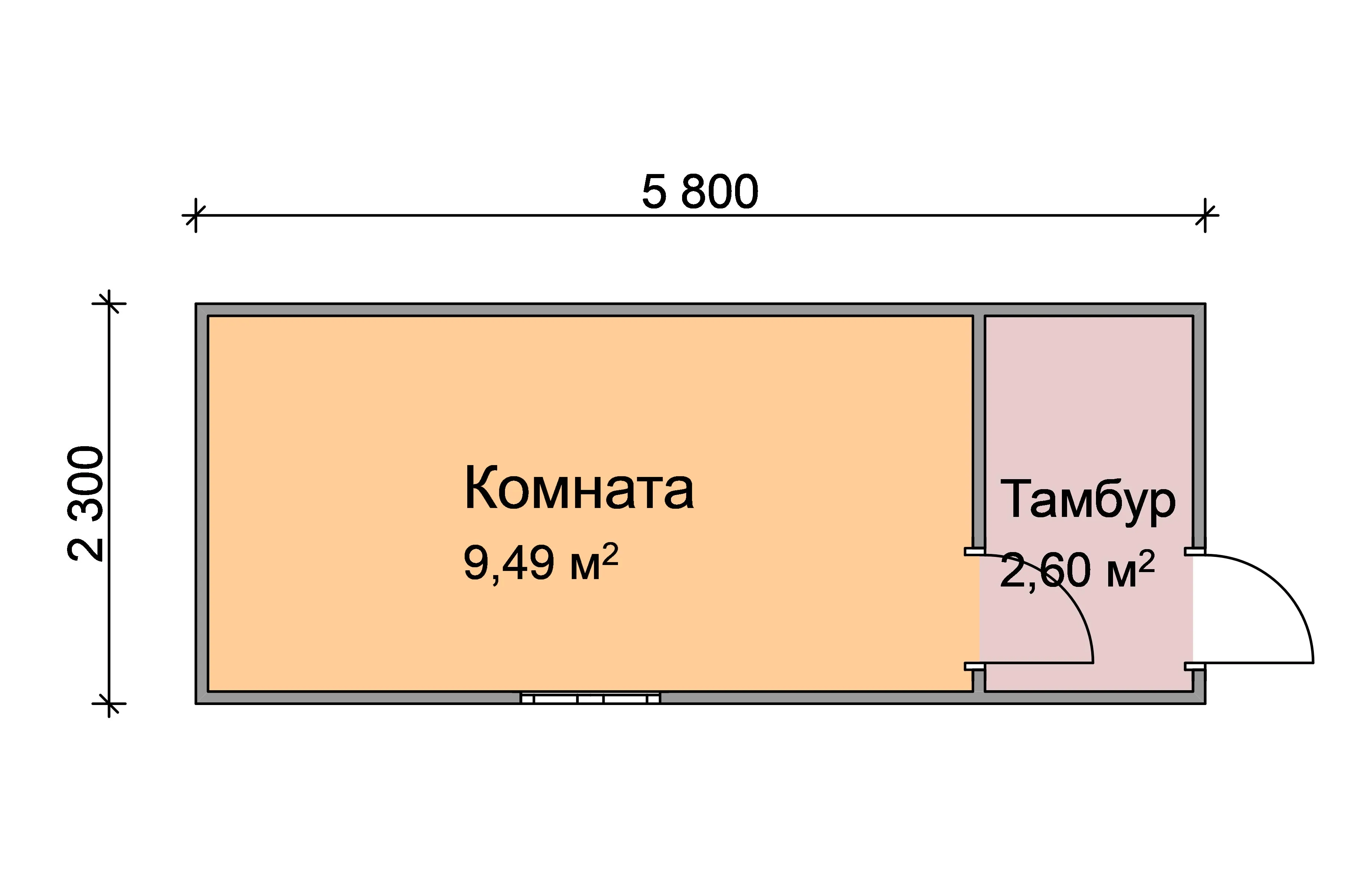 Блок контейнер с тамбуром 5850х24005,85х2,414,04ДВП-Оргалит: